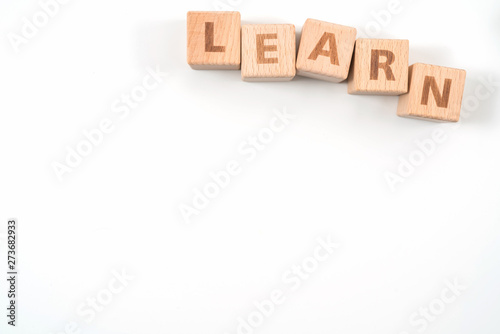 © yaophotograph, Obraz premium word LEARN on wood cube dices on white background.