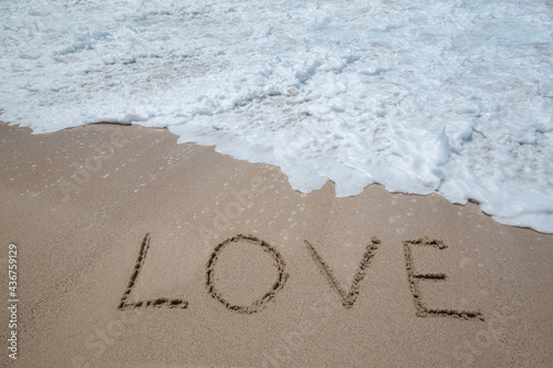 © Lana_M, Fototapeta premium Word love written on the golden sand