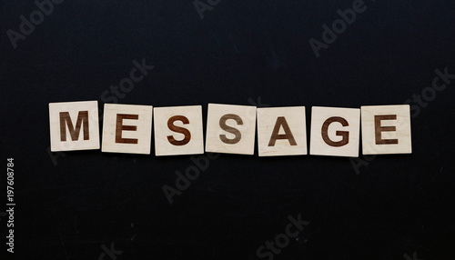 Obraz premium Word MESSAGE on wooden signs over black