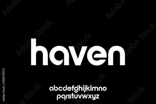 Obraz premium word of haven . modern minimalist clean alphabet font. lowercase bold...
