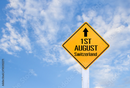 Naklejka premium Word of 1ST AUGUST Switzerland on yellow sign