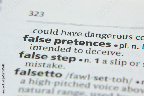 Obraz premium Word or phrase False Pretences in a dictionary.