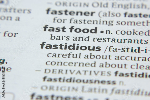 Obraz premium Word or phrase Fastidious in a dictionary.