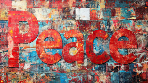 Fototapeta premium word "Peace" in bold, textured red letters set against a vibrant and abstract...