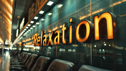 Obraz premium word "RELAXATION" in big letters on a display at the airport