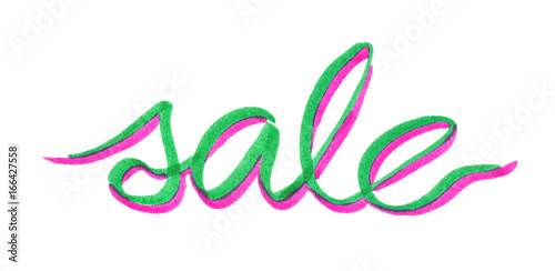 © tina bits, Obraz premium Word "sale" painted in bright neon felt highlighter pen on clean white background