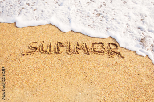 © Alex Photo, Fototapeta premium Word summer written on sand.