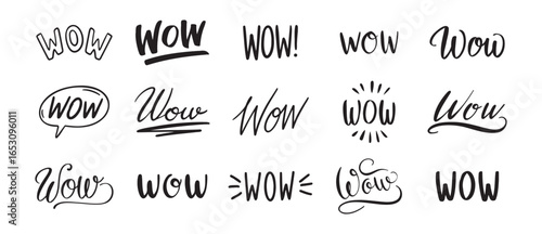 © Yanka, Fototapeta premium word WOW hand drawn lettering phrase or quote set. wow modern freehand style isolated on white background for print clipart.