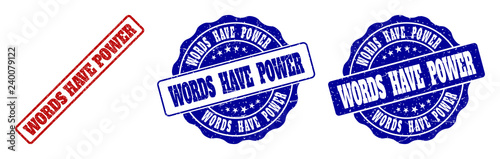 Fototapeta premium WORDS HAVE POWER scratched stamp seals in red and blue colors. Vector WORDS...