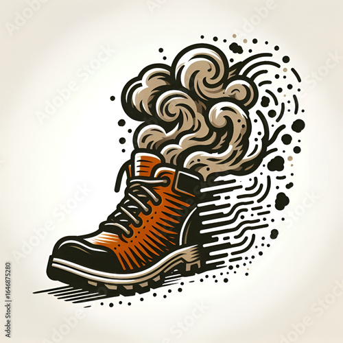 © Thebro , Naklejka premium Work Boot with Smoke and Swirling Lines