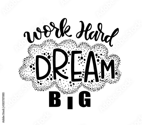 Naklejka premium Work hard dream big, hand lettering. Motivational quotes