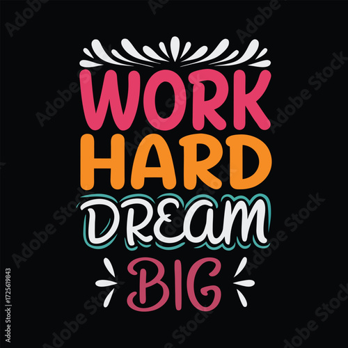 Obraz premium Work Hard Dream Big text with decorative elements on black background vector