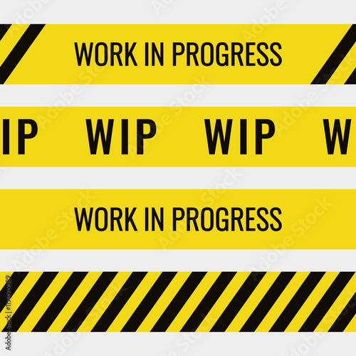 Obraz premium Work in progress seamless tapes. Yellow and Black tapes with stripes and text