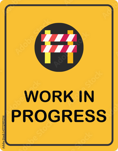 Fototapeta premium Work In Progress Sign | Yellow Construction Barrier Graphic for Website...