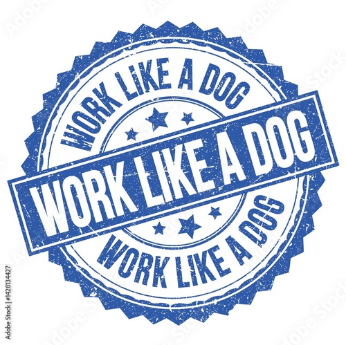 Fototapeta premium WORK LIKE A DOG text on blue round stamp sign