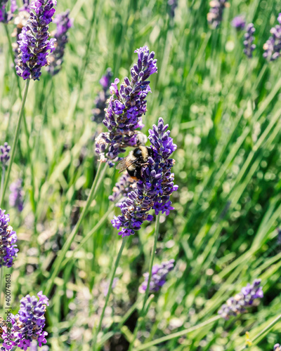 Obraz premium Worker bees collecting pollen from lavender fields