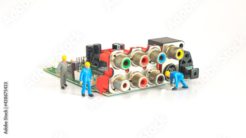 © amnarj2006, Obraz premium Worker figure on circuit board,service concept.