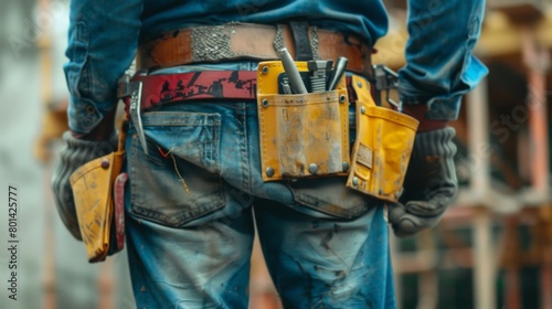 Fototapeta premium Worker Wearing Tool Belt at Construction Site