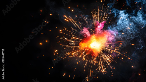 © jayranine, Fototapeta premium worker while doing a welding with arc welder welding or welding Sparks for background, Backdrop and manufacturing.