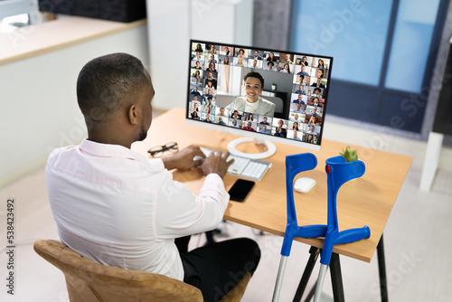 Obraz premium Worker With Crutches At Workplace