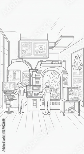 Fototapeta premium Workers in a recycling facility operating advanced machinery and technology
