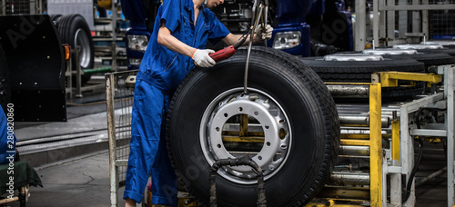Fototapeta premium Workers in machinery factory in China.