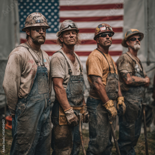 © KHENG, Fototapeta premium workers in uniform with american flag
