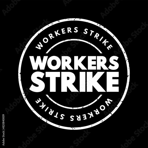 Fototapeta premium Workers strike - collective refusal by employees to work under the conditions required by employers, text concept stamp