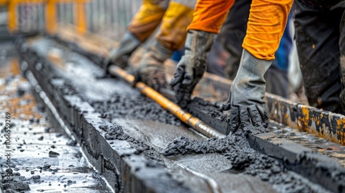© Justlight, Fototapeta premium Workers use specialized tools to take samples of the concrete and test its strength and durability.