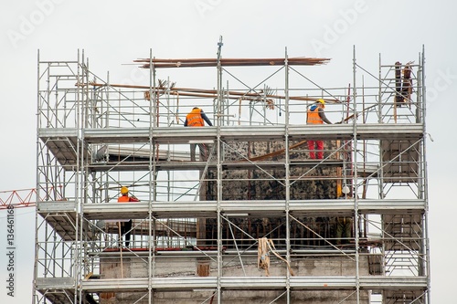 © pierluigipalazzi, Fototapeta premium workers working on scaffolding