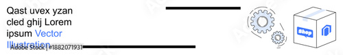 Obraz premium Workflow automation, logistics processes, systems management, technology, engineering, business solutions. A box, gears and process arrows convey interconnected systems and workflows. Workflow