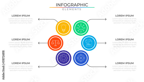 © Hero Design, Naklejka premium Workflow circular infographic elements concept design vector with icons. Six steps annual network project template for presentation and report.