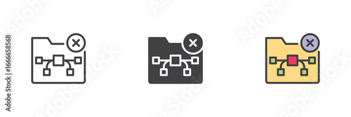 Fototapeta premium Workflow folder cross icon set pack ? line, solid, filled outline, different style