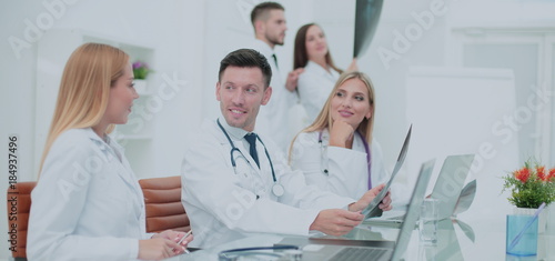 Fototapeta premium Workflow in the clinic. Doctors communicate and analyze an X-ray