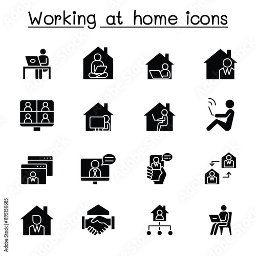 © Puckung, Fototapeta premium Working at home icons set in thin line style