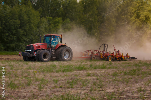 © Diflope, Naklejka premium Working Harvesting Combine in the Field of Wheat