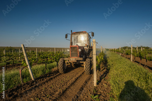Fototapeta premium Working machines on the grape field