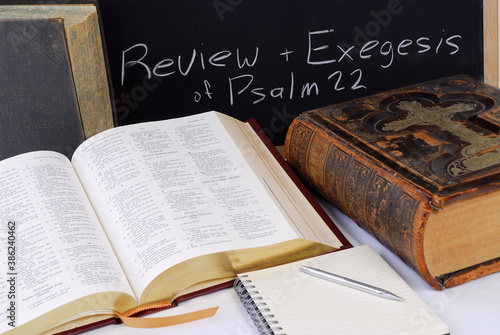 Obraz premium Working on scripture assignment with large bibles