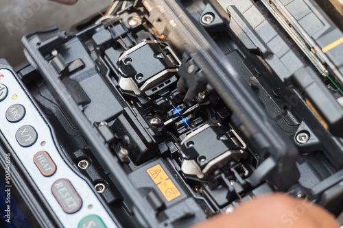 © nengredeye, Fototapeta premium working with fiber optic fusion splicer