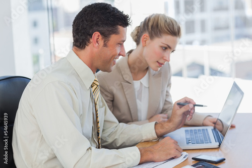 Obraz premium Workmates working together on their computer