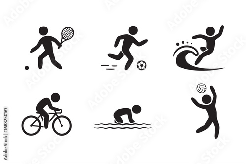 © ALI, Naklejka premium Workout and gym symbols collection including weightlifting, jogging, and stretching