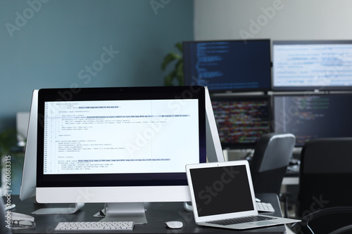 © Pixel-Shot, Fototapeta premium Workplace of programmer in office