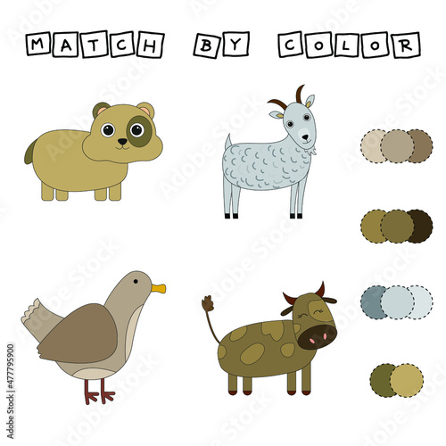 © Виталий Сова, Obraz premium worksheet vector design, challenge to connect the pet with its color. Logic game for children.