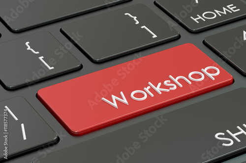 Fototapeta premium workshop button, red hot key on keyboard, 3D rendering