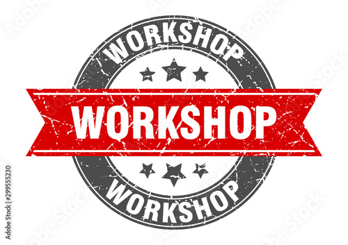Obraz premium workshop round stamp with red ribbon. workshop
