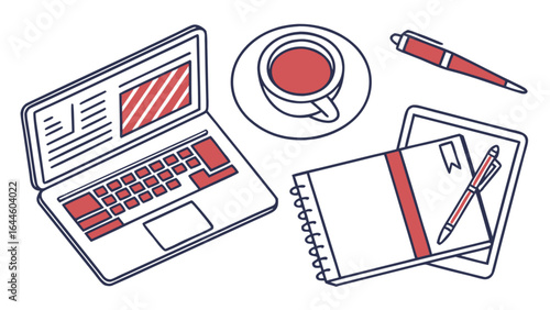 © Aslihan, Fototapeta premium Workspace illustration with laptop coffee notebook and pen for productivity and work from home concept