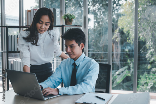 Fototapeta premium Workteam discussing new project in office.