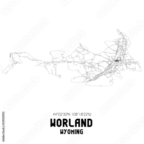 Fototapeta premium Worland Wyoming. US street map with black and white lines.