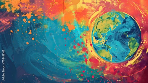 © Palung, Naklejka premium World Art Day background with copy space area on side for text. Abstract, colour, and art background. Colorful background, design, banner, poster.