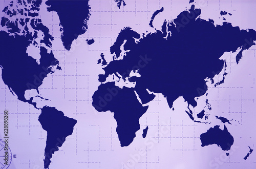 © jobi_pro, Fototapeta premium World Atlas Wall Decoration in Navy Blue and Pastel Purple Color